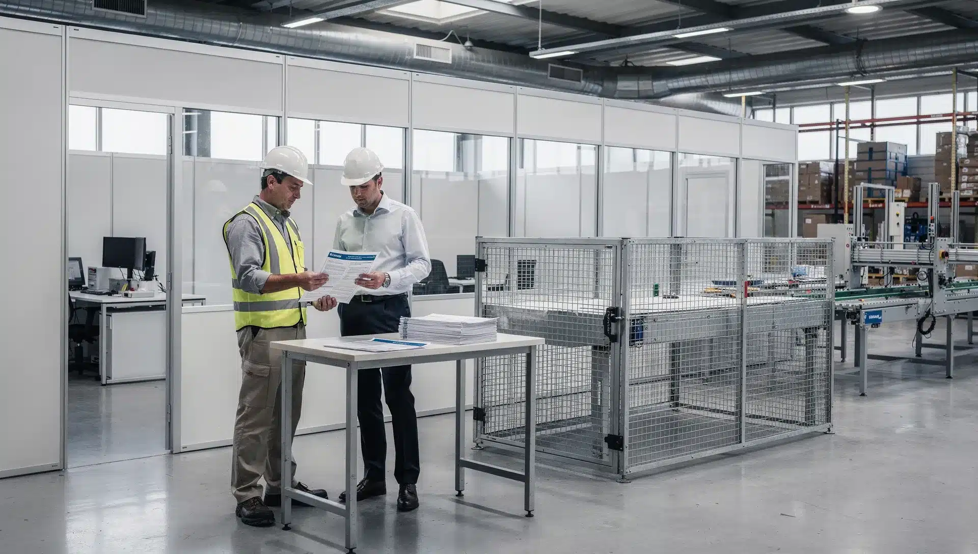 La quarta verifica è quella che più spesso esplode a cantiere avviato: la compatibilità con macchine e layout. Una parete divisoria da ufficio e una compartimentazione di sicurezza in area produttiva possono sembrare parenti strette. In pratica non lo sono affatto. Quando il box industriale diventa barriera verso organi in movimento, aree robotizzate o zone pericolose, entrano in gioco la Direttiva Macchine 2006/42/CE e la norma EN ISO 14120 sui ripari, richiamate anche da operatori tecnici come DENIOS e Manutan. A quel punto non state più discutendo solo di chiusure e porte. State discutendo di accesso al rischio.